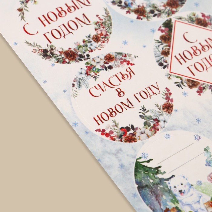 Наклейки новогодние бумажные «С Новым годом», на подарки, 9 х 16 см