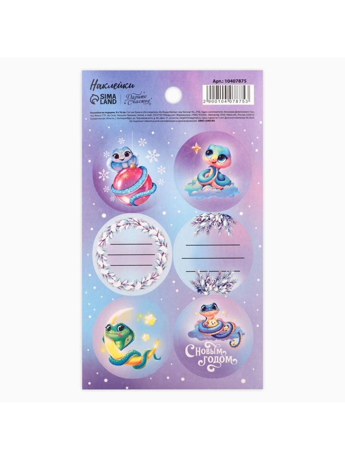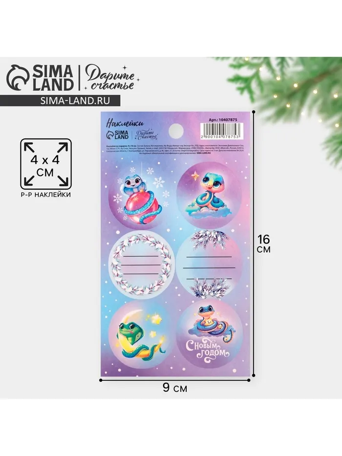 Наклейки новогодние бумажные «Змея 2025», 9 х 16 см, на подарки — Характеристики