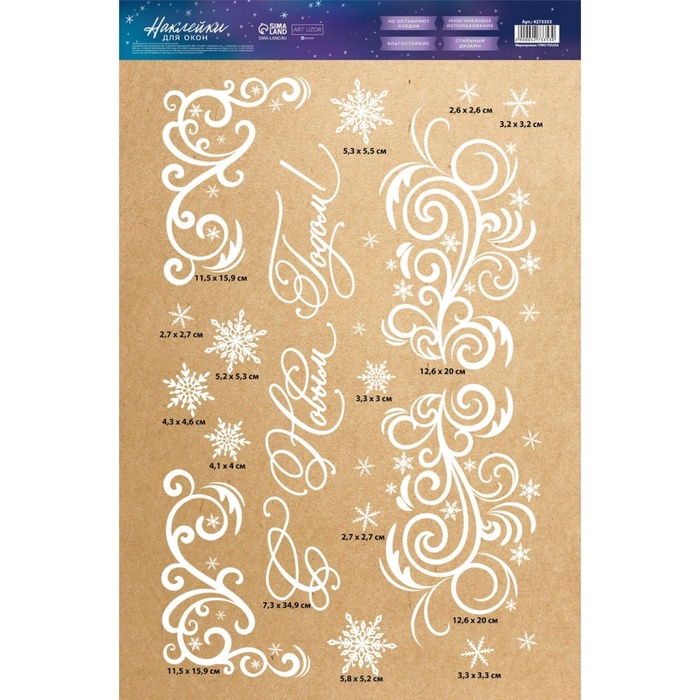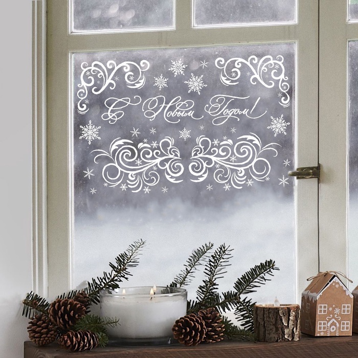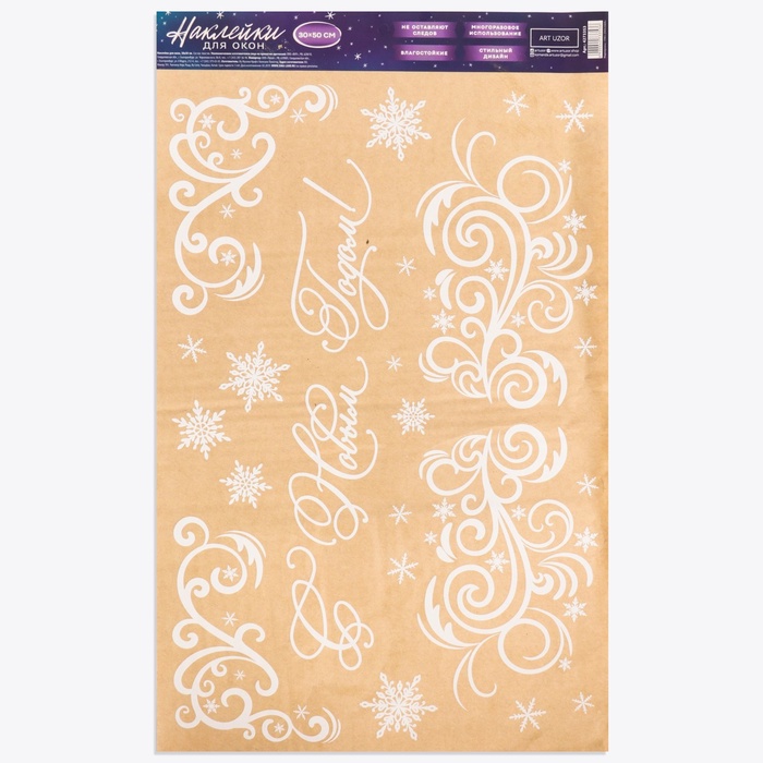 Наклейки новогодние для окон «Морозные узоры», многоразовые, 33×50 см — Характеристики