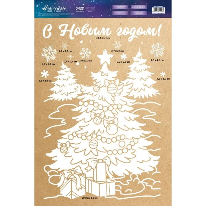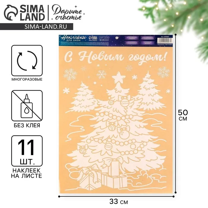 Наклейки новогодние для окон «Подарочки», многоразовые, 33 х 50 см — Характеристики