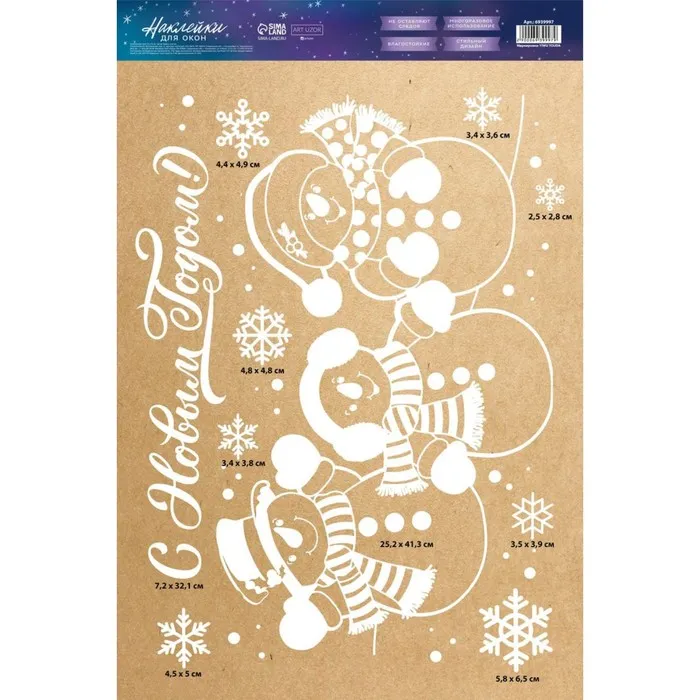 Наклейки новогодние для окон «С новым годом», многоразовые, 33 х 50 см — Характеристики