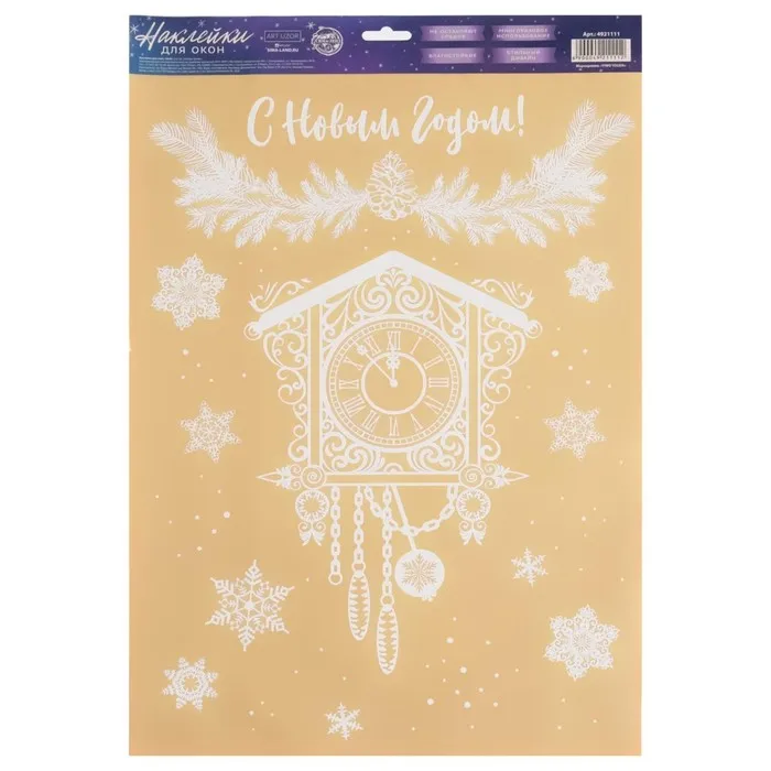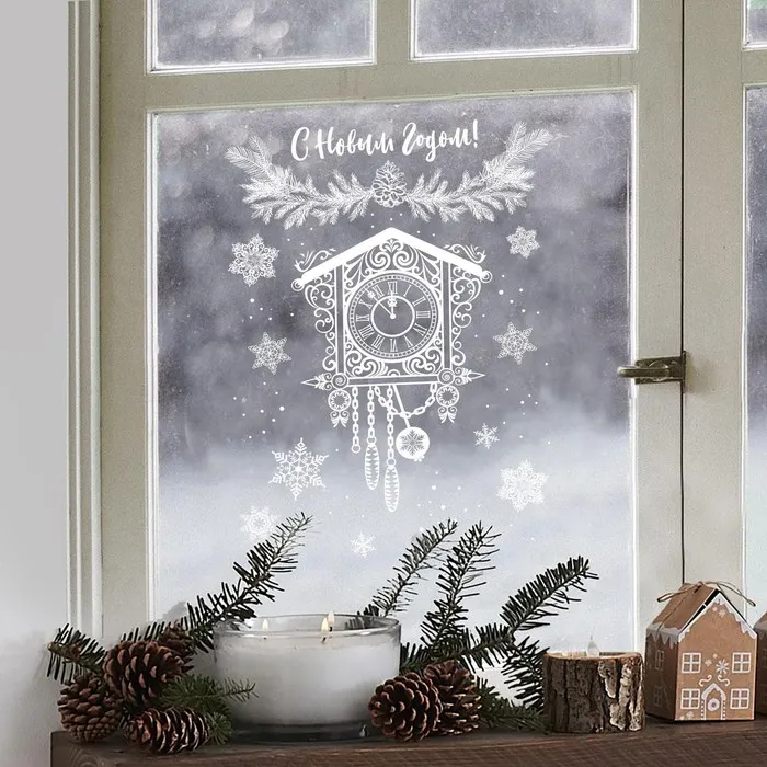 Наклейки новогодние для окон «Старинные часы», многоразовые, 33 х 50 см — Характеристики