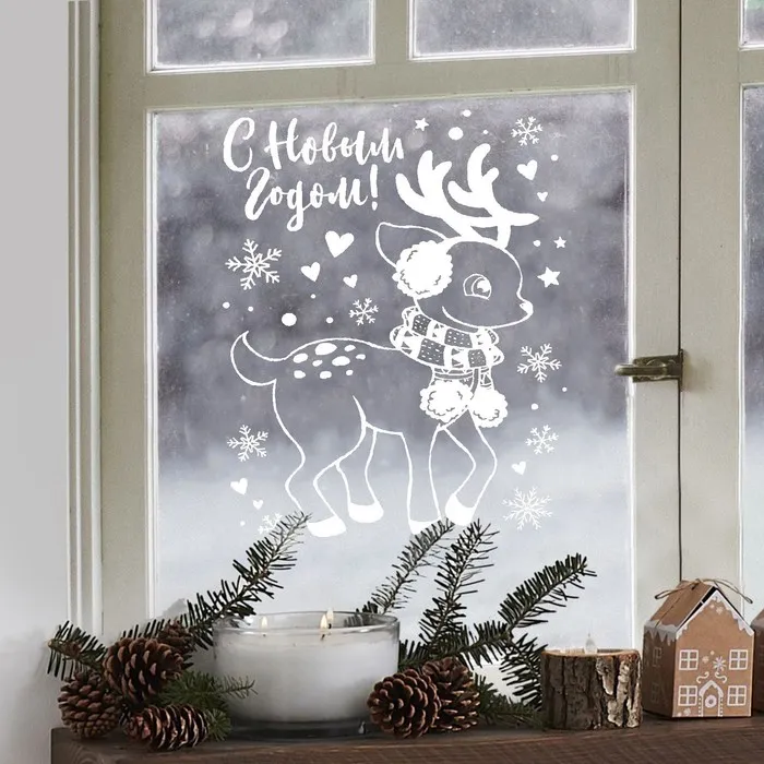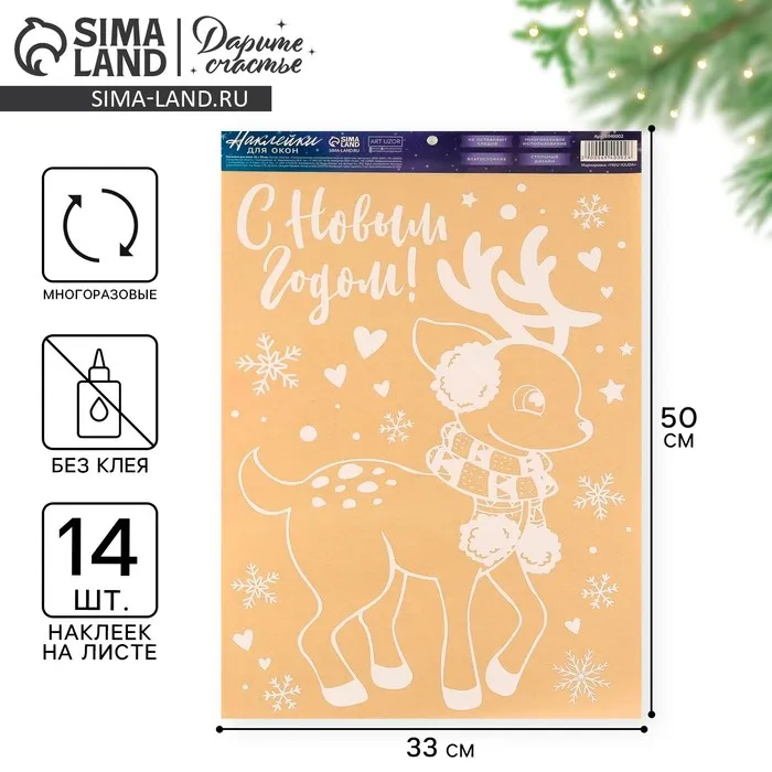 Наклейки новогодние для окон «Зимний малыш», многоразовые, 33 х 50 см — Характеристики