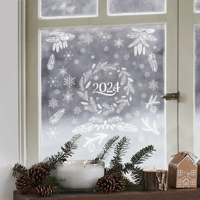 Наклейки новогодние для окон «Зимний праздник», многоразовые, 33 х 50 см — Характеристики