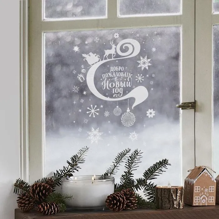 Наклейки новогодние «Добро пожаловать», с блестящей пластизолью, 29.7×42 см — Характеристики