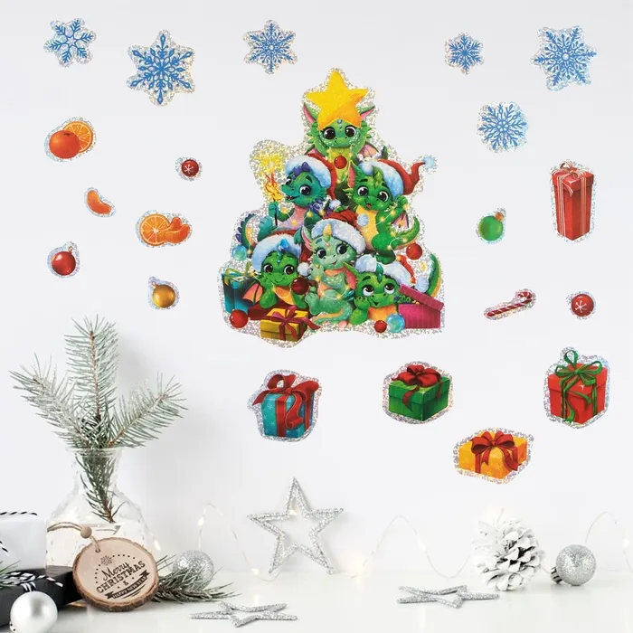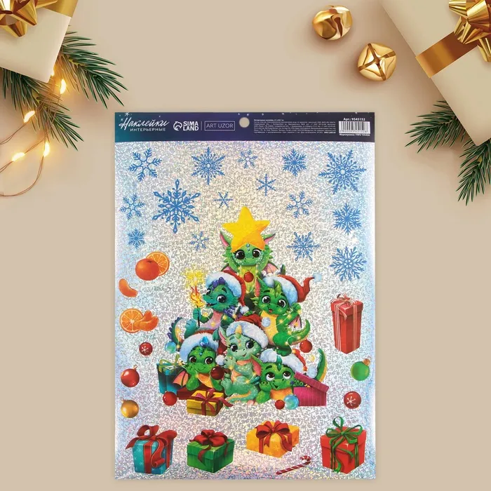 Наклейки новогодние, интерьерные «Дракончики», голография 21 х 29.7 см — Характеристики