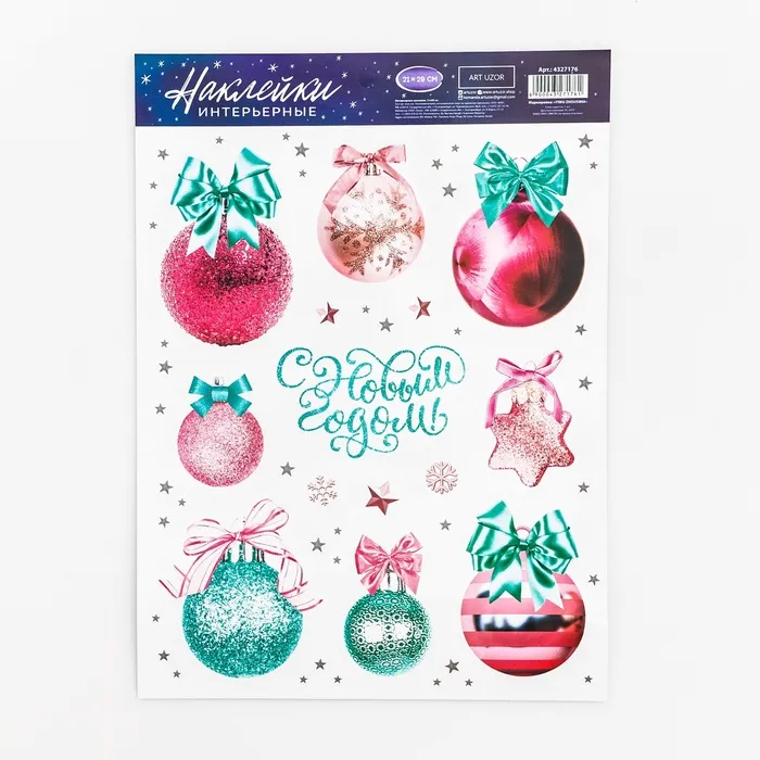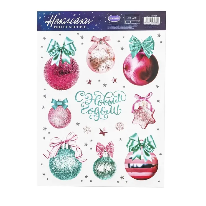Наклейки новогодние, интерьерные «Новогодний шарики», 21 х 29.7 см — Характеристики