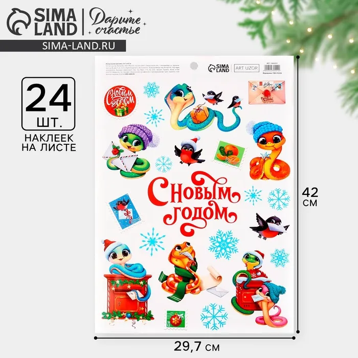Наклейки новогодние, интерьерные «С новым годом», 29.7×42 см — Характеристики