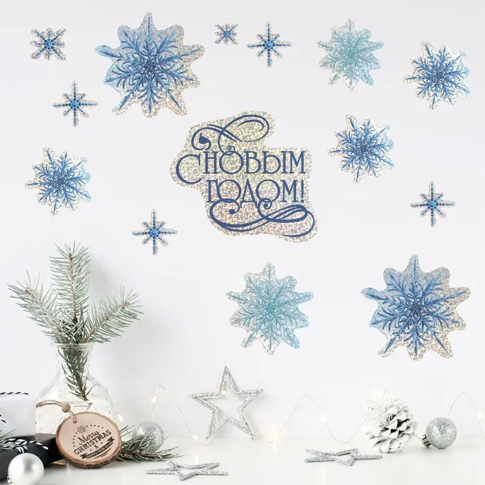 Наклейки новогодние, интерьерные «С Новым годом», голография 21 х 29.7 см — Характеристики