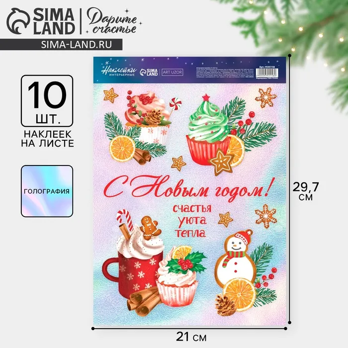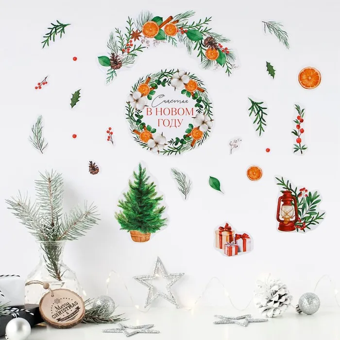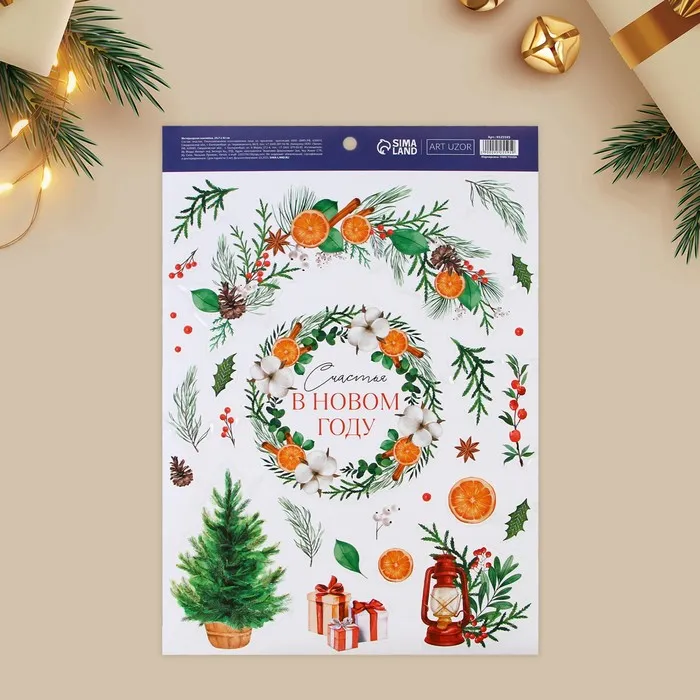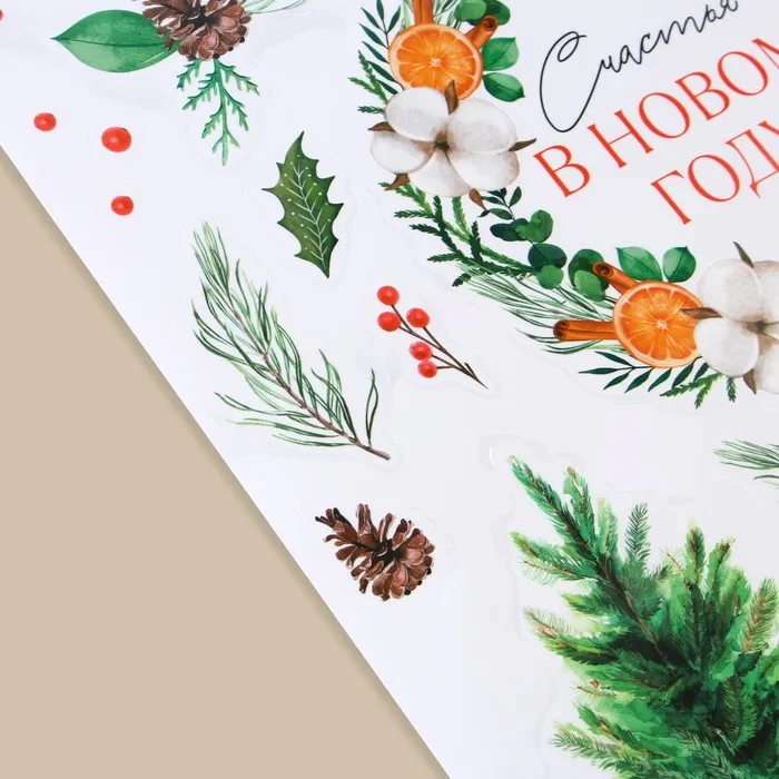 Наклейки новогодние, интерьерные «Счастья в Новом году», 29.7 х 42 см — Характеристики