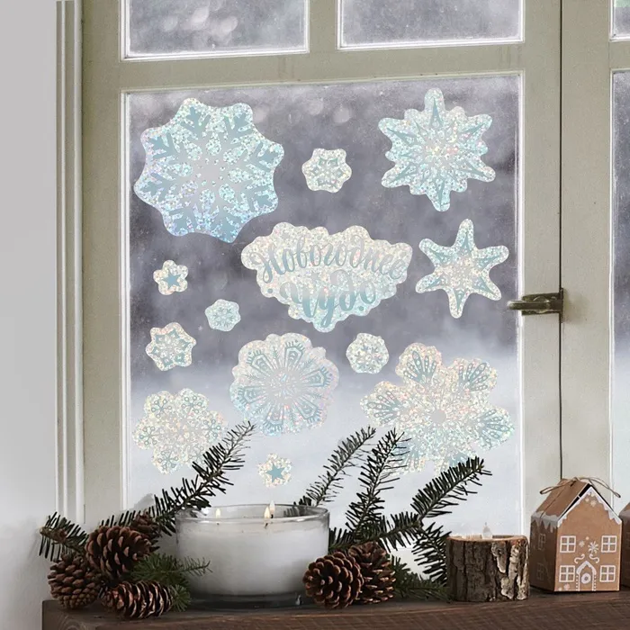 Наклейки новогодние интерьерные «Снежинки», голография, 21×29.7 см — Характеристики
