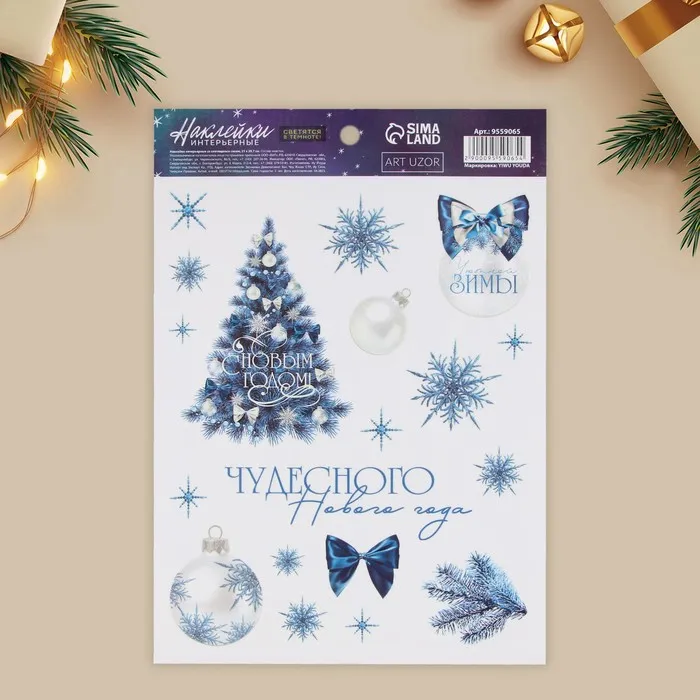Наклейки новогодние, интерьерные со светящимся слоем «Чудесного года», 21 х 29.7 см — Характеристики