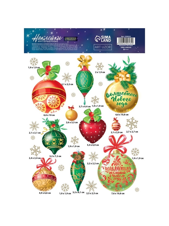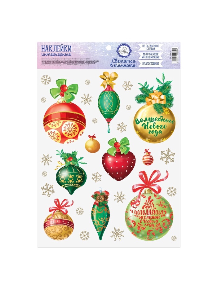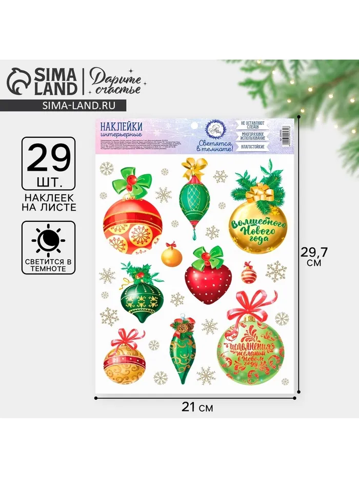 Наклейки новогодние, интерьерные со светящимся слоем «Исполнения желаний», 21×29.7 см — Характеристики