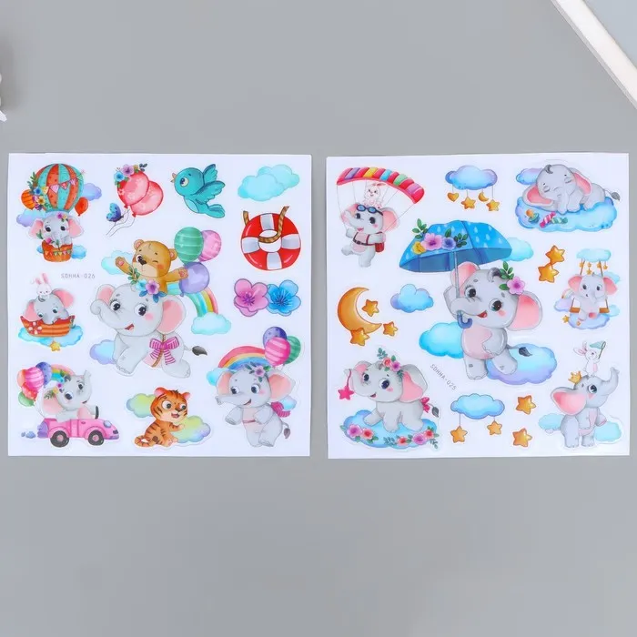 Наклейки новогодние, интерьерные со светящимся слоем «Праздник у ёлки», 21 х 29,7 см