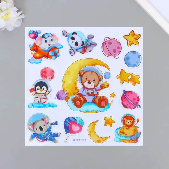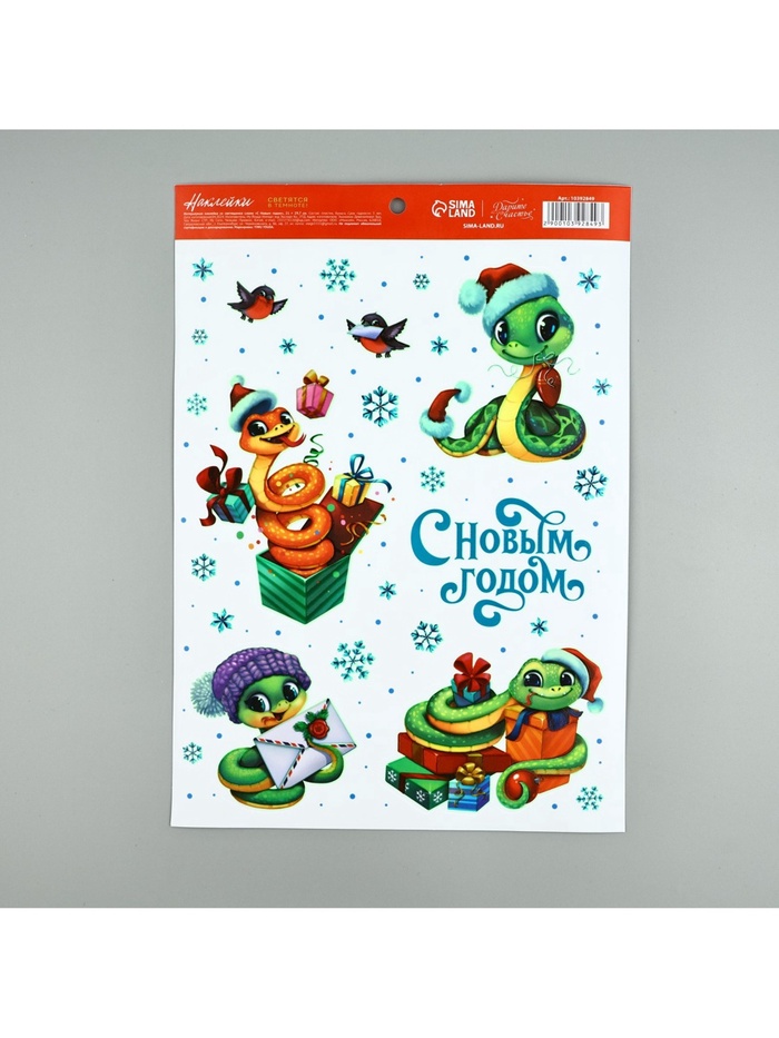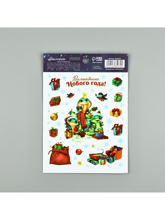 Наклейки новогодние, интерьерные со светящимся слоем «Праздник у ёлки», 21 х 29,7 см — Характеристики