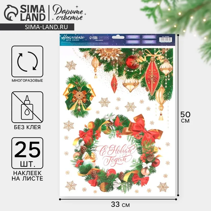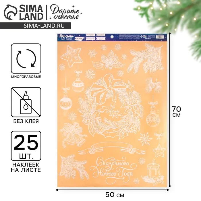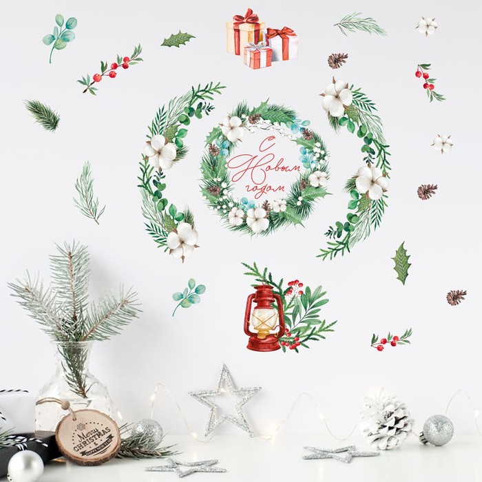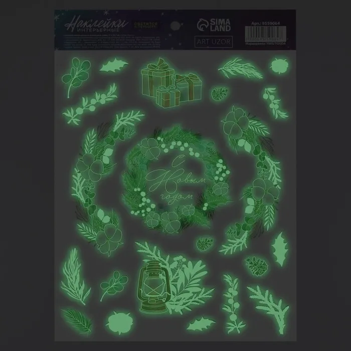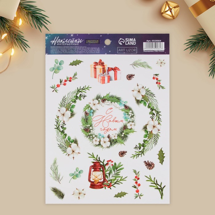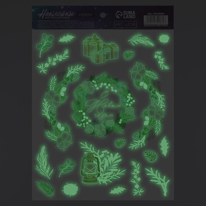 Наклейки новогодние, интерьерные со светящимся слоем «С Новым годом», 21 х 29.5 см — Характеристики