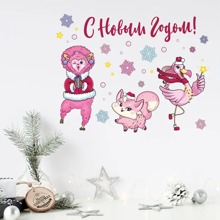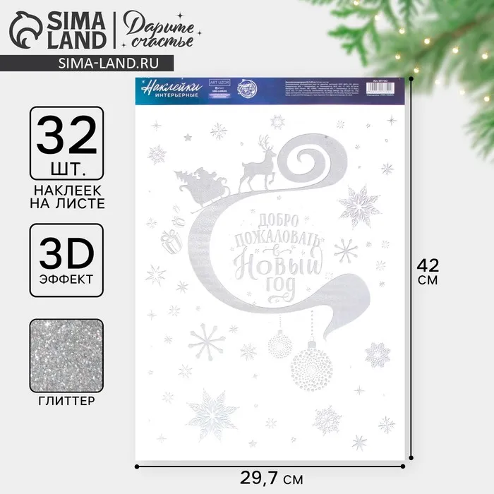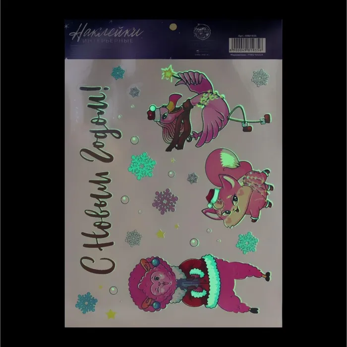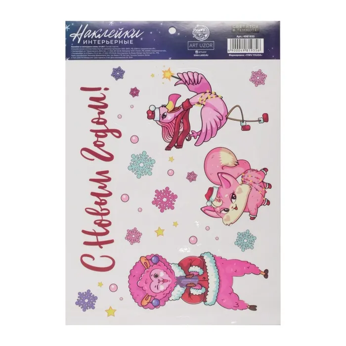 Наклейки новогодние, интерьерные со светящимся слоем «Стильный Новый Год», 21×29.7 см — Характеристики