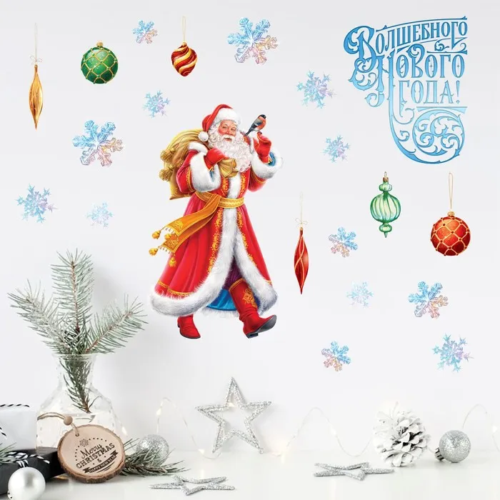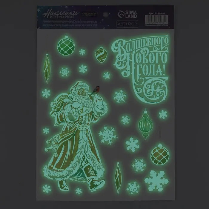 Наклейки новогодние, интерьерные со светящимся слоем «Волшебного Нового года», 21 х 29.7 см — Характеристики