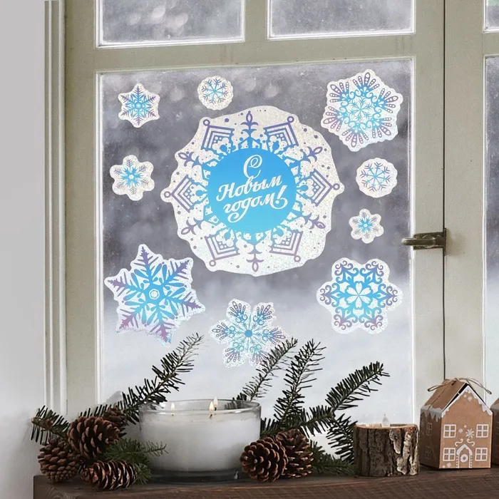 Наклейки новогодние интерьерные «Сверкающие снежинки», голография, 21×29.7 см — Характеристики