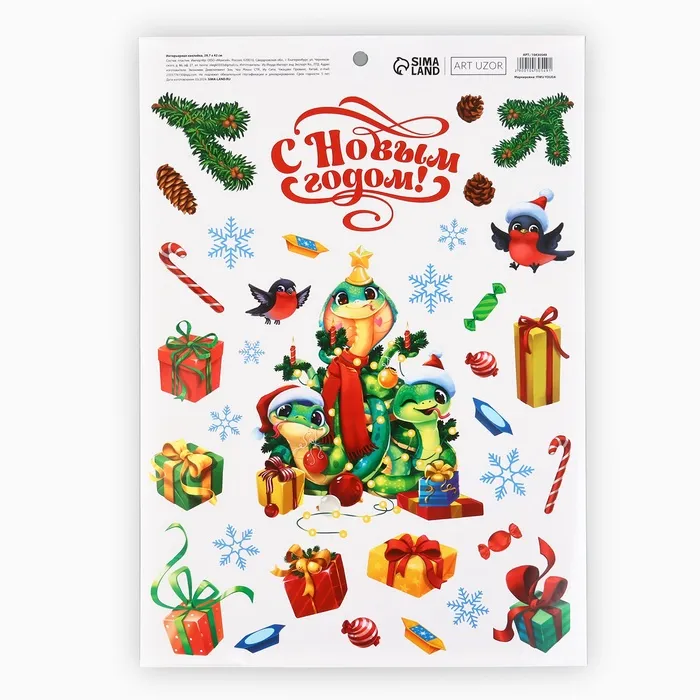 Наклейки новогодние, интерьерные «Змея 2025», 29.7 х 42 см — Характеристики