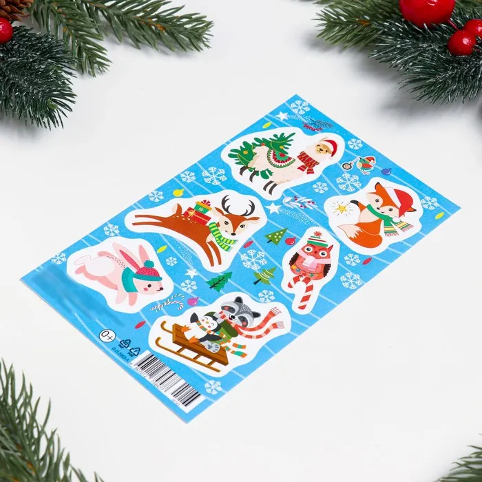 Наклейки новогодние «Лесные обитатели», 10×16 см — Характеристики