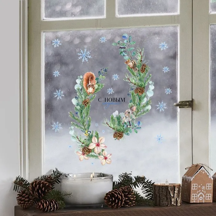 Наклейки новогодние на окна «Акварельный Новый год», многоразовые, 33 х 50 см — Характеристики