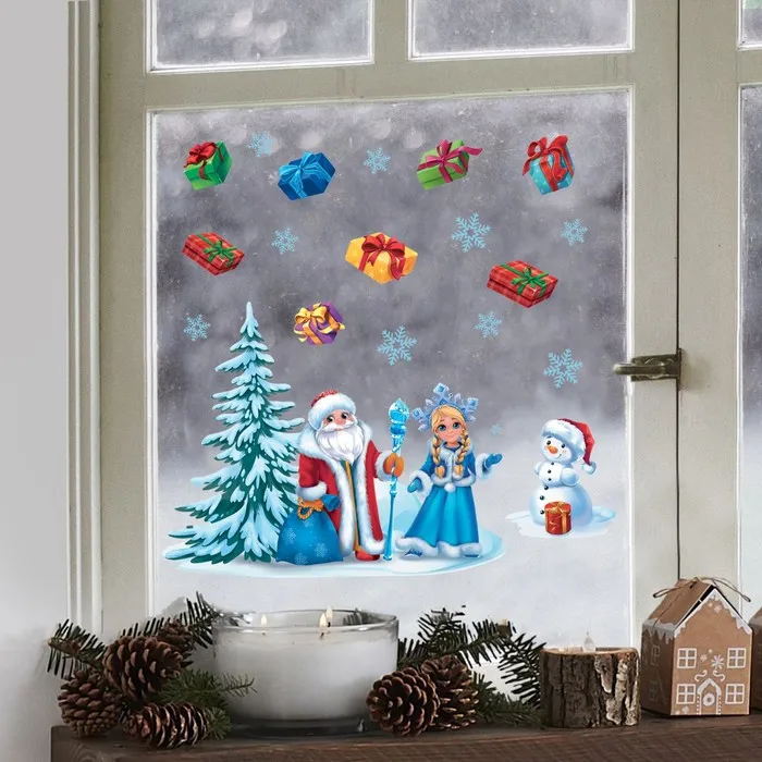 Наклейки новогодние на окна «Дед Мороз и снегурочка», многоразовые, 33 х 50 см — Характеристики