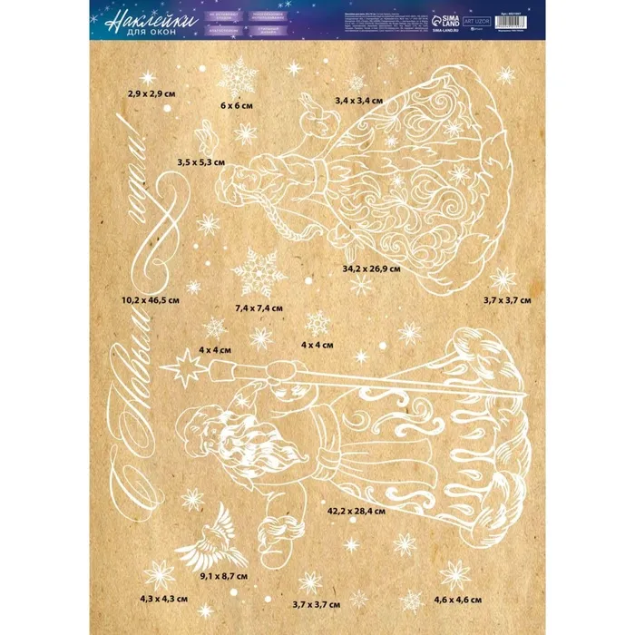 Наклейки новогодние на окна «Дед Мороз и Снегурочка», многоразовые, 50 х 70 см — Характеристики