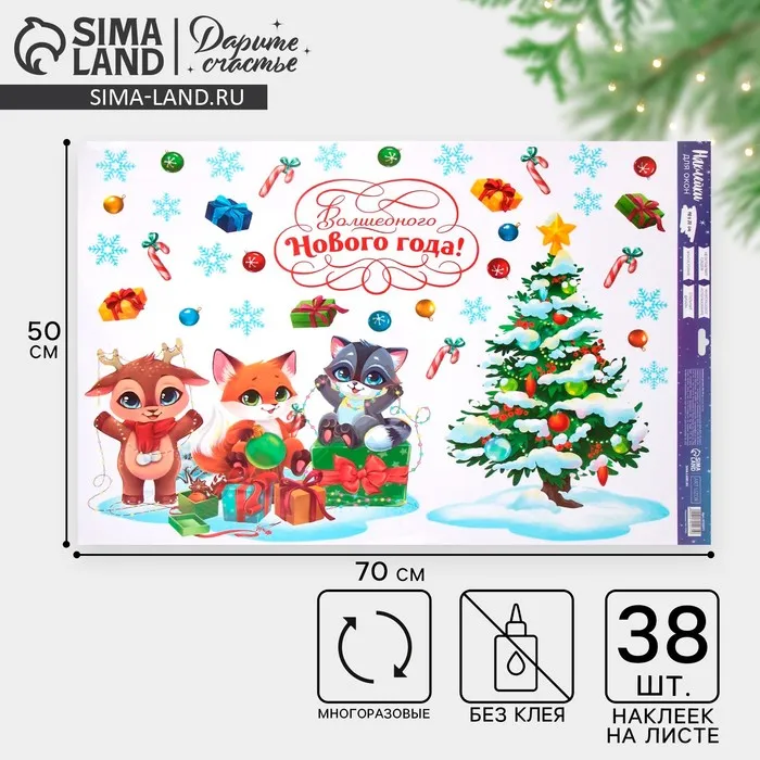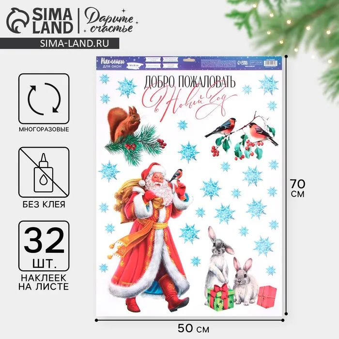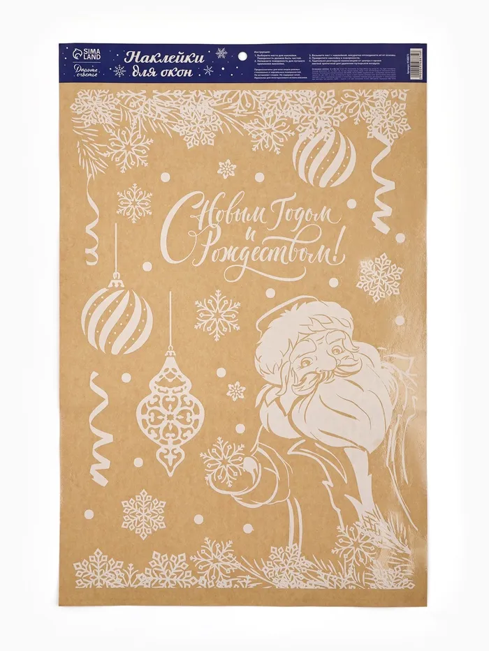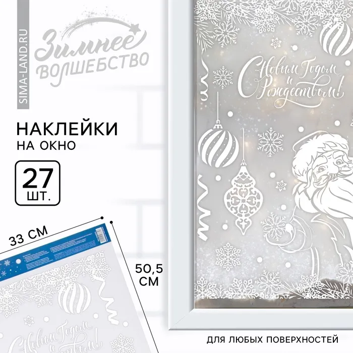 Наклейки новогодние на окна «Дед Мороз», на Новый год, 33 х 50.5 см — Характеристики