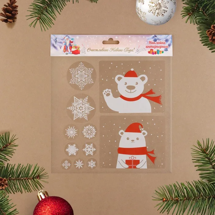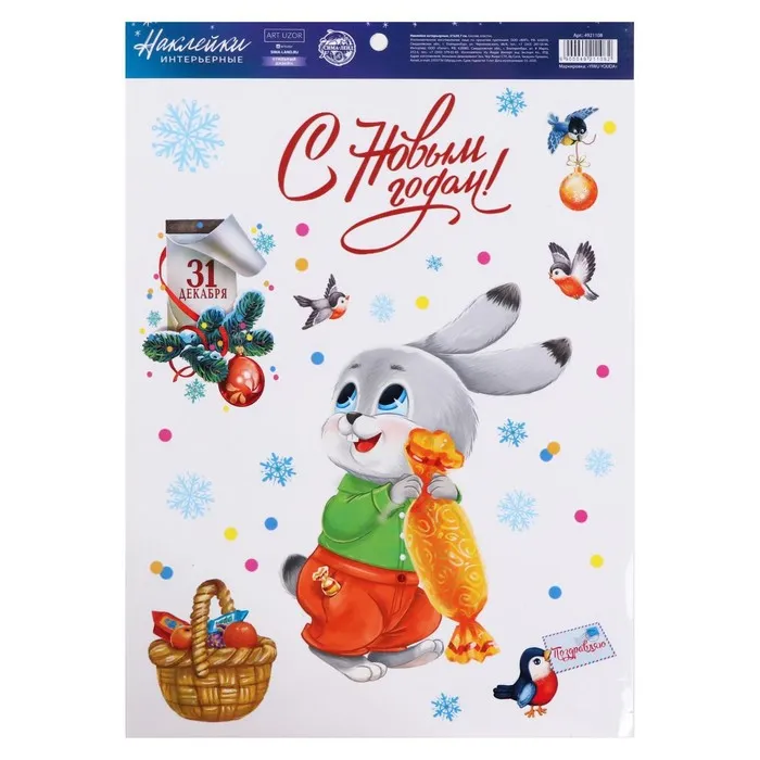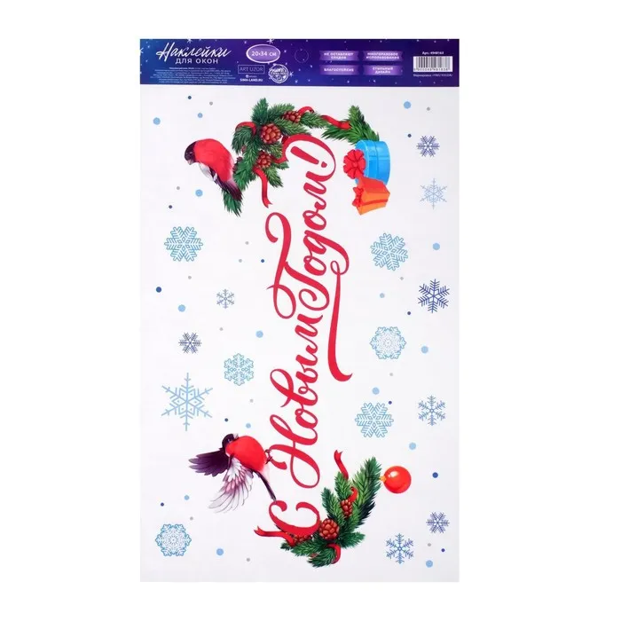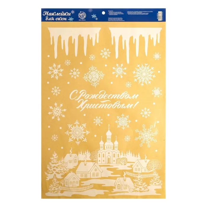 Наклейки новогодние на окна «Деревенька», на Новый год, 33 х 55 см. — Характеристики