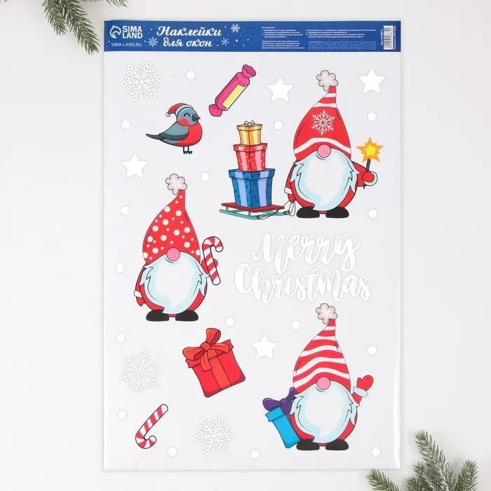Наклейки новогодние на окна «Гномики», на Новый год, 33 х 50,5 см — Характеристики