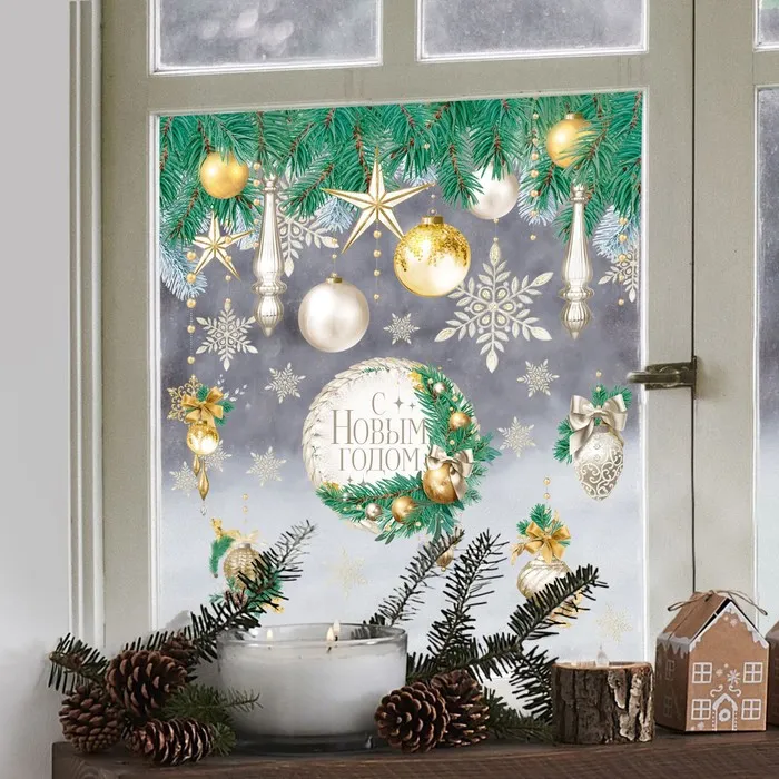 Наклейки новогодние на окна «Мороз и солнце», 50 х 70 см — Характеристики