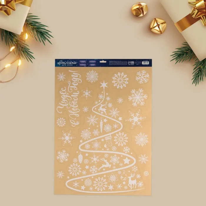 Наклейки новогодние на окна «Новогодняя елочка» , многоразовые, 50 х 70 см — Характеристики