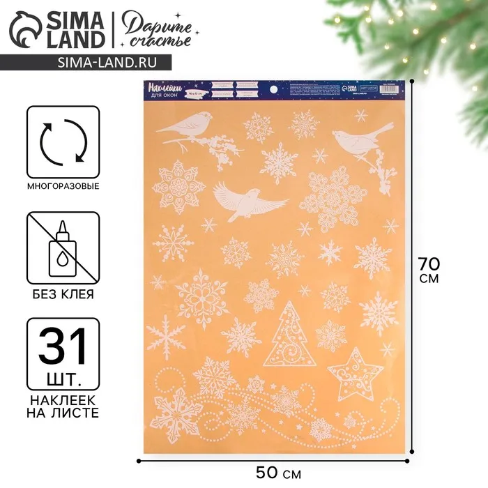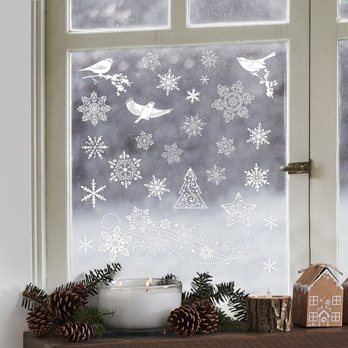 Наклейки новогодние на окна «Новогодняя вьюга», многоразовые, 50 х 70 см — Характеристики