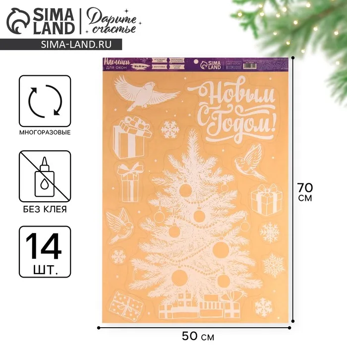 Наклейки новогодние на окна «Новогодние друзья», многоразовые, 50 х 70 см — Характеристики