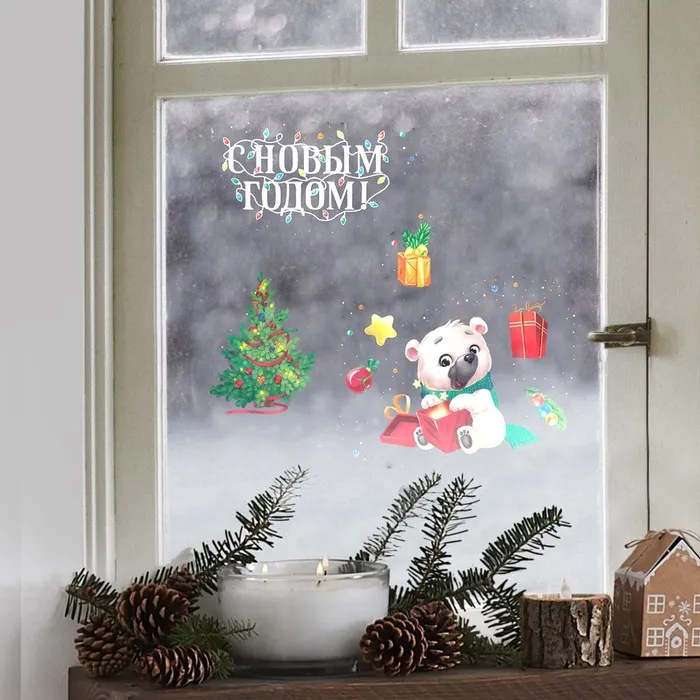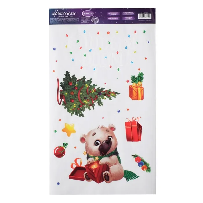Наклейки новогодние на окна «Новогодние подарки», многоразовые, 20 х 34 см — Характеристики