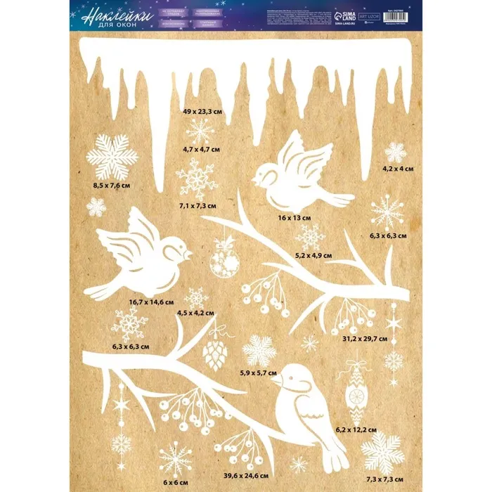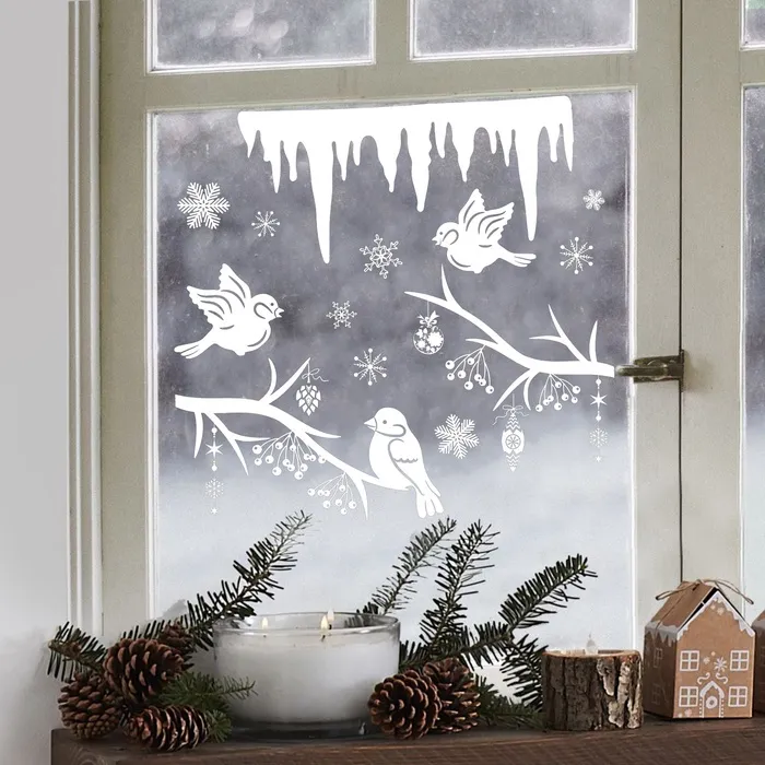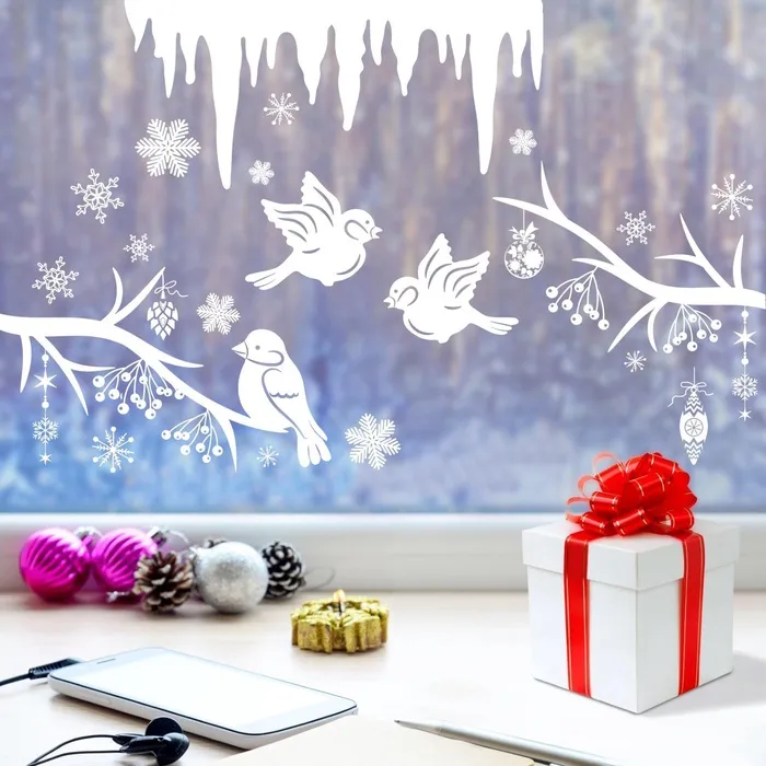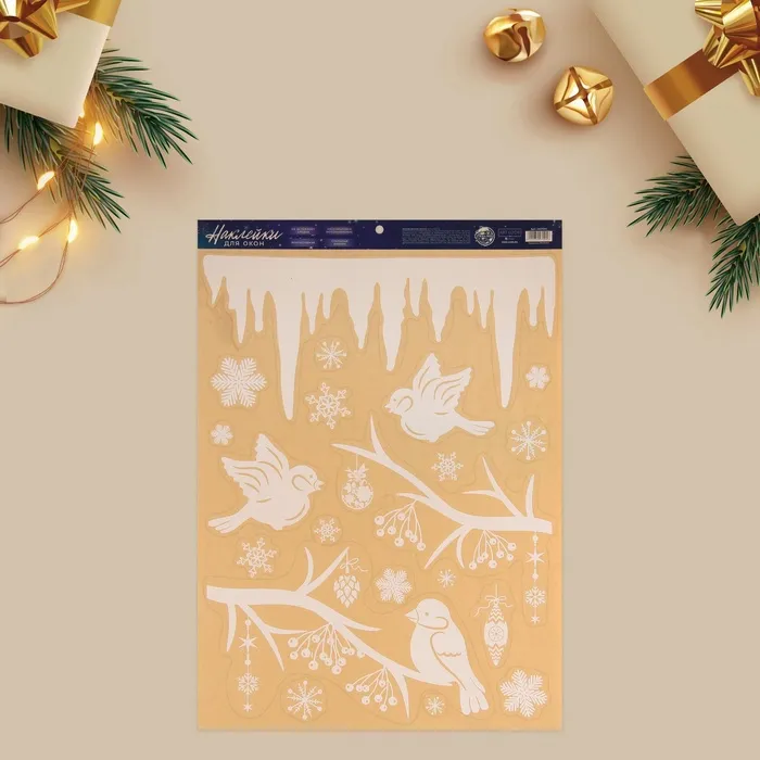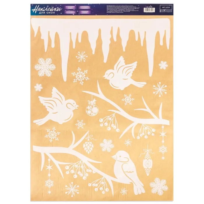 Наклейки новогодние на окна «Новогодние птички» , многоразовые, 50 х 70 см — Характеристики