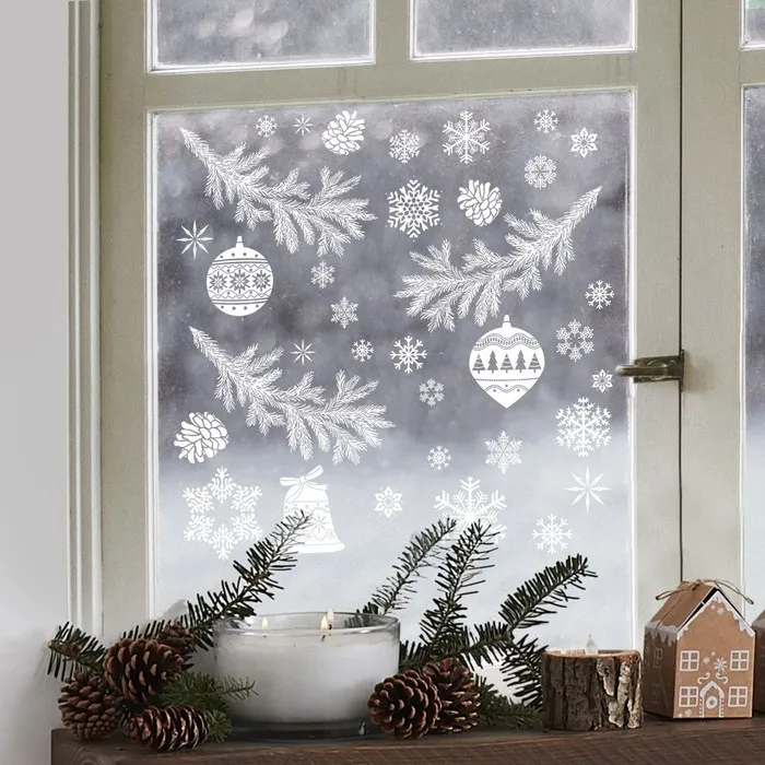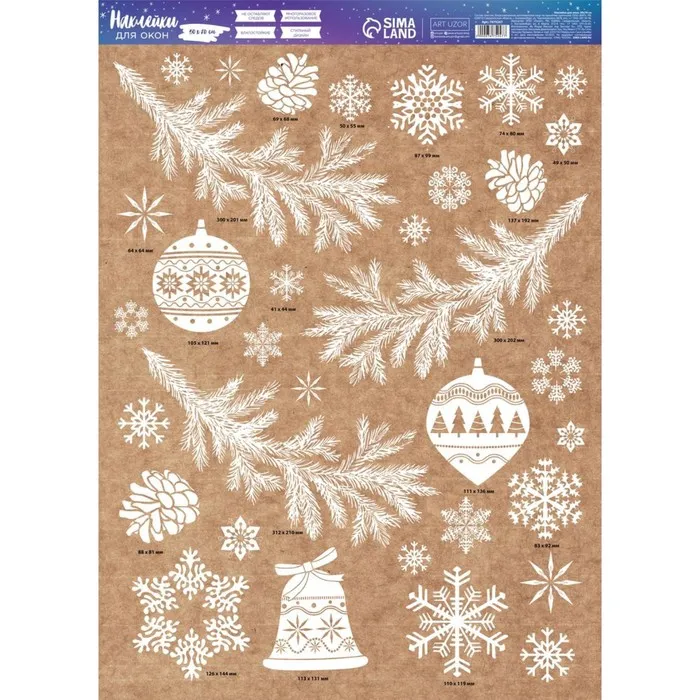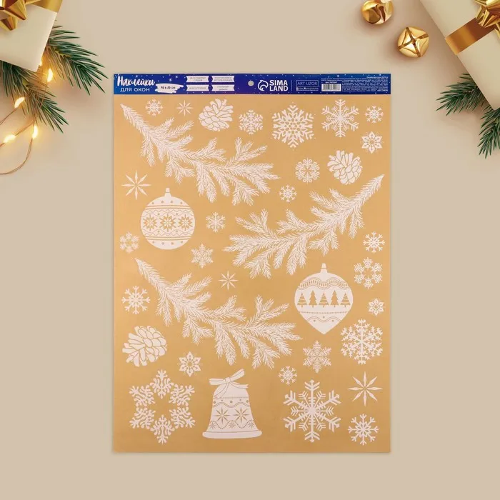 Наклейки новогодние на окна «Новогодние украшения», многоразовые, 50 х 70 см — Характеристики