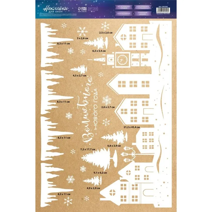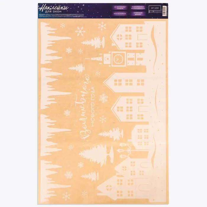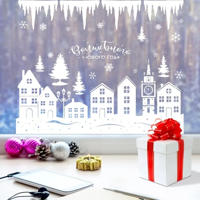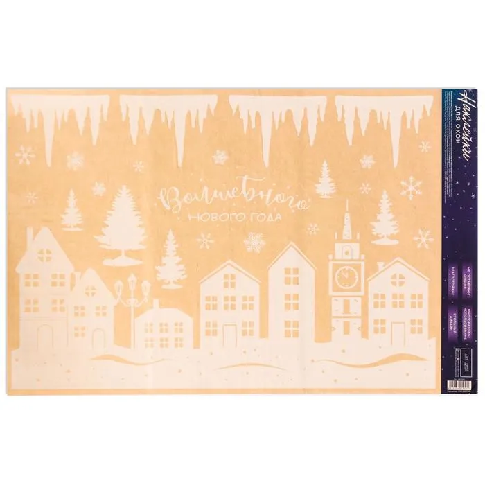 Наклейки новогодние на окна «Новогодний городок», многоразовые, 33 х 50 см — Характеристики