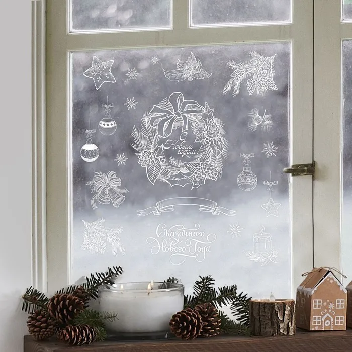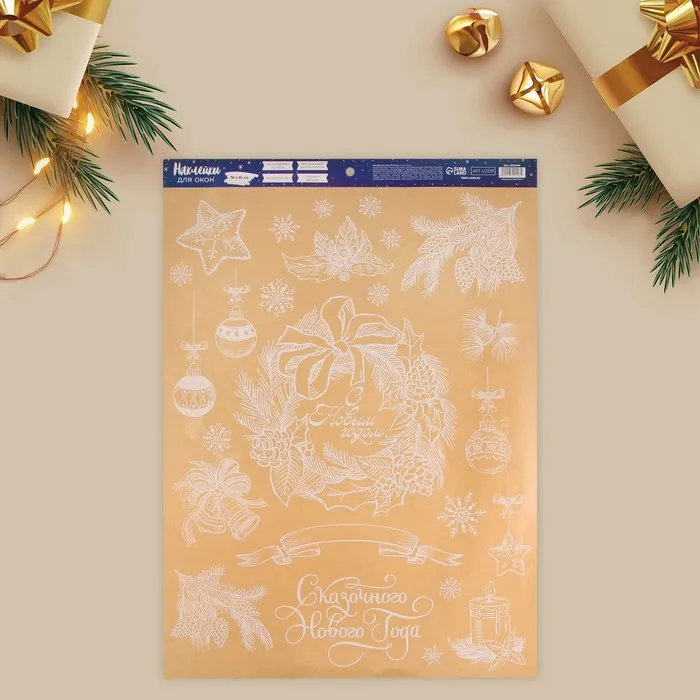 Наклейки новогодние на окна «Новогодний венок», многоразовые, 50 х 70 см — Характеристики