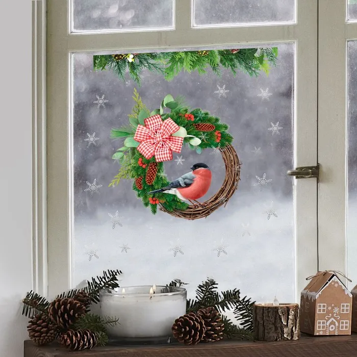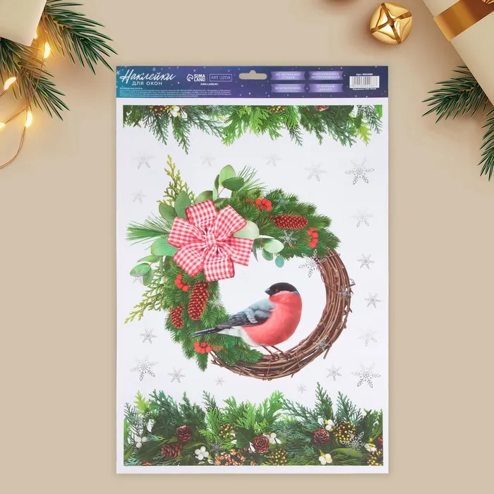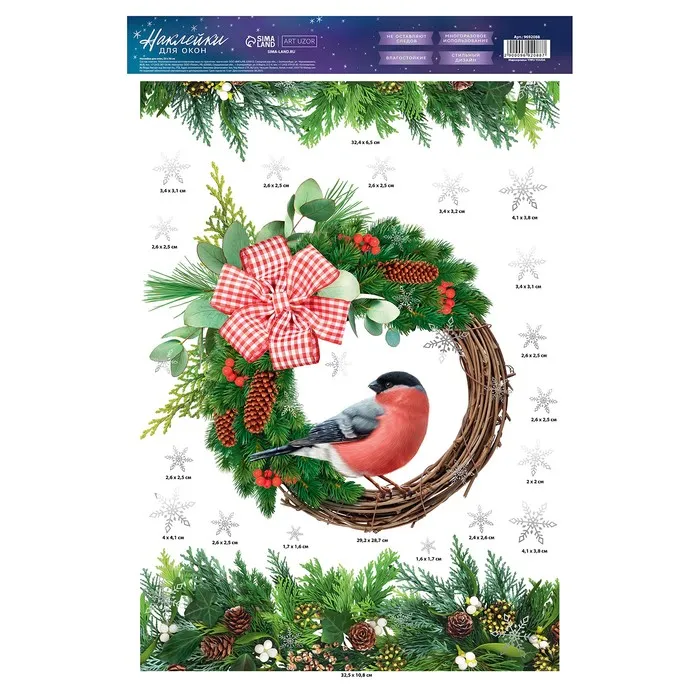 Наклейки новогодние на окна «Снегирь», многоразовые, 33 х 50 см — Характеристики
