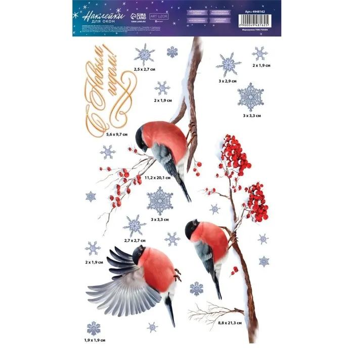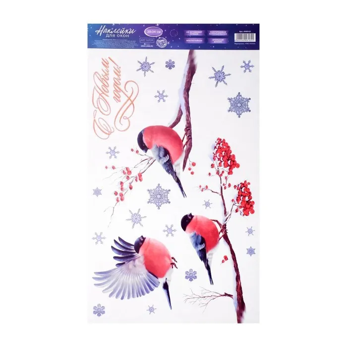 Наклейки новогодние на окна «Снегири», 20 х 34 см — Характеристики