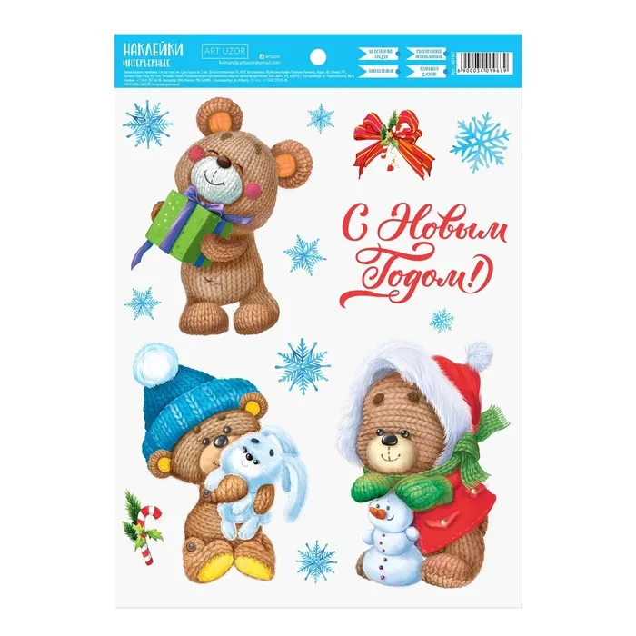 Наклейка интерьерная «Вязаные мишки», 21 х 29,7 см