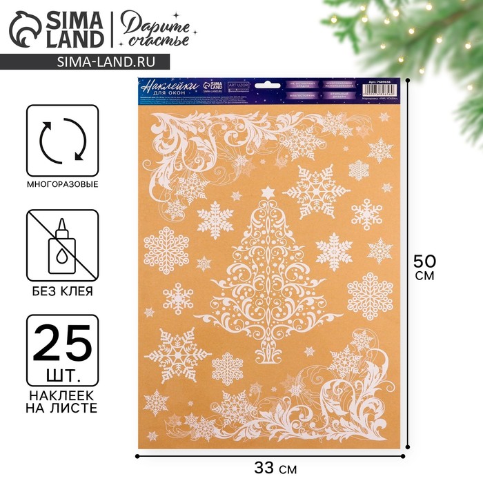 Наклейки новогодние на окна «Ёлочка», многоразовые, многоразовые, 33 х 50 см