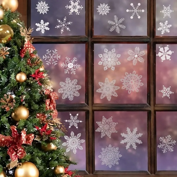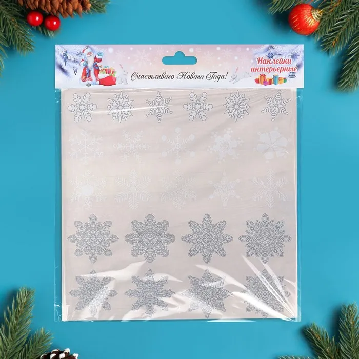 Наклейки новогодние на окна «Снежинки», 37×37 см — Характеристики