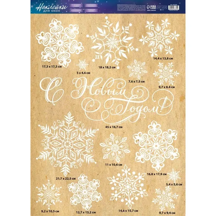 Наклейки новогодние на окна «Снежинки», многоразовые, 50 х 70 см — Характеристики