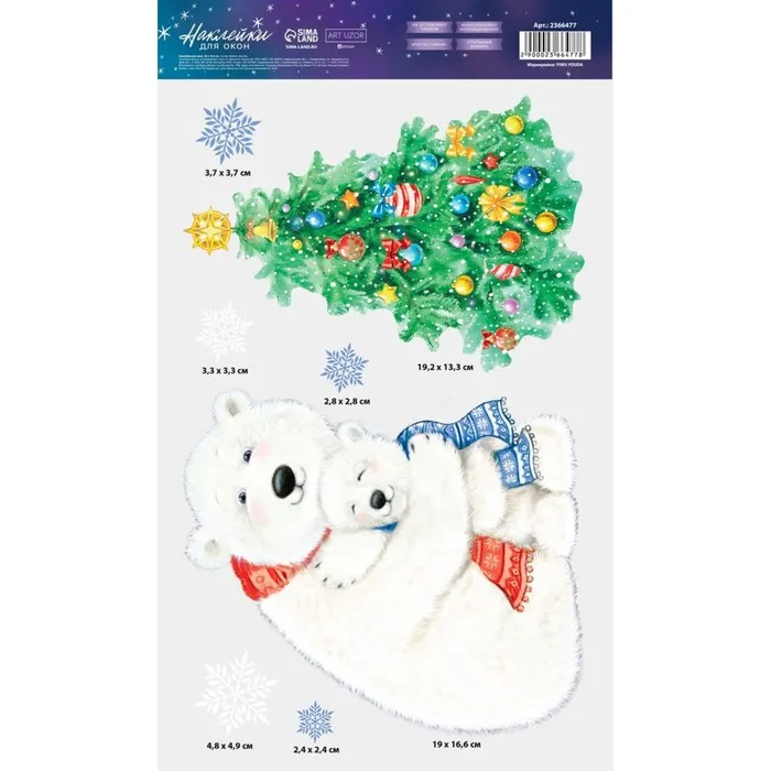 Наклейки новогодние на окна «Снежные забавы», многоразовые, 20 х 34 см — Характеристики