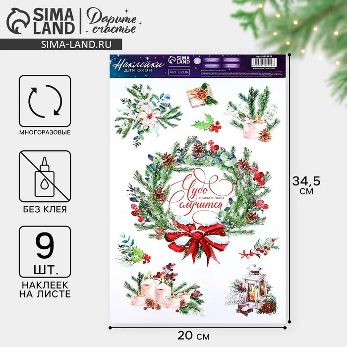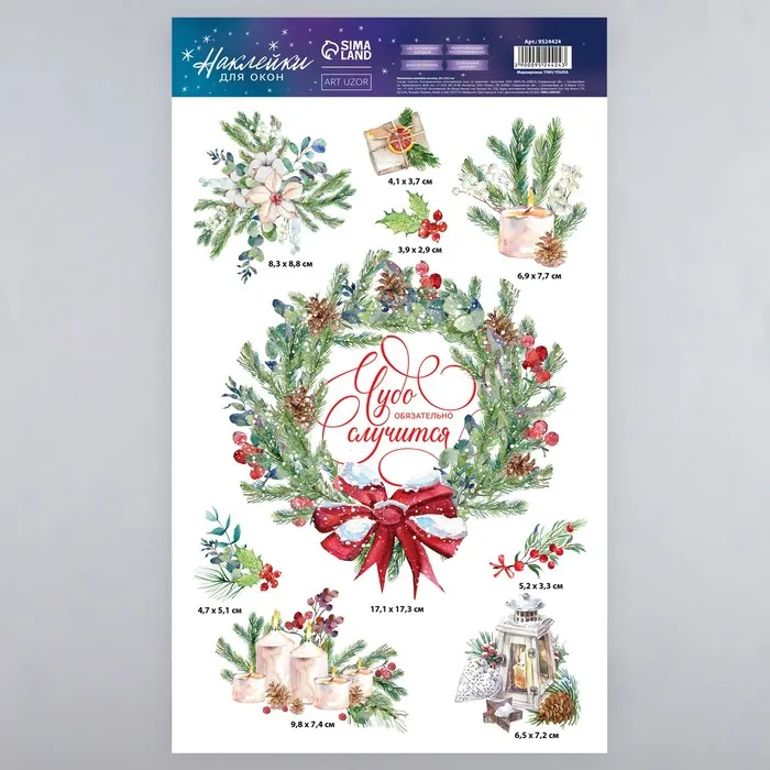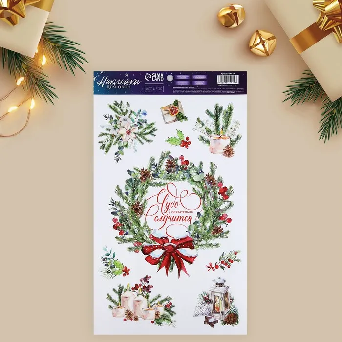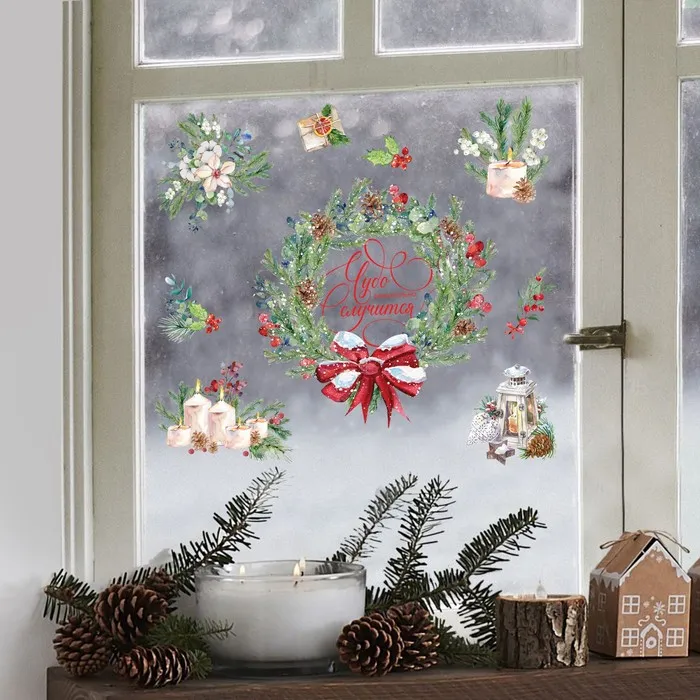 Наклейки новогодние на окна, виниловые «Чудеса», многоразовые, 20 х 34.5 см — Характеристики