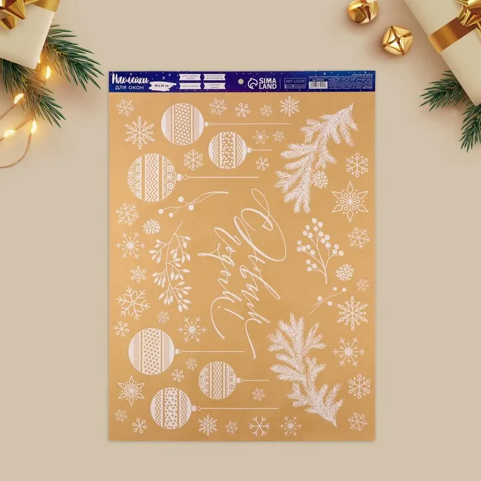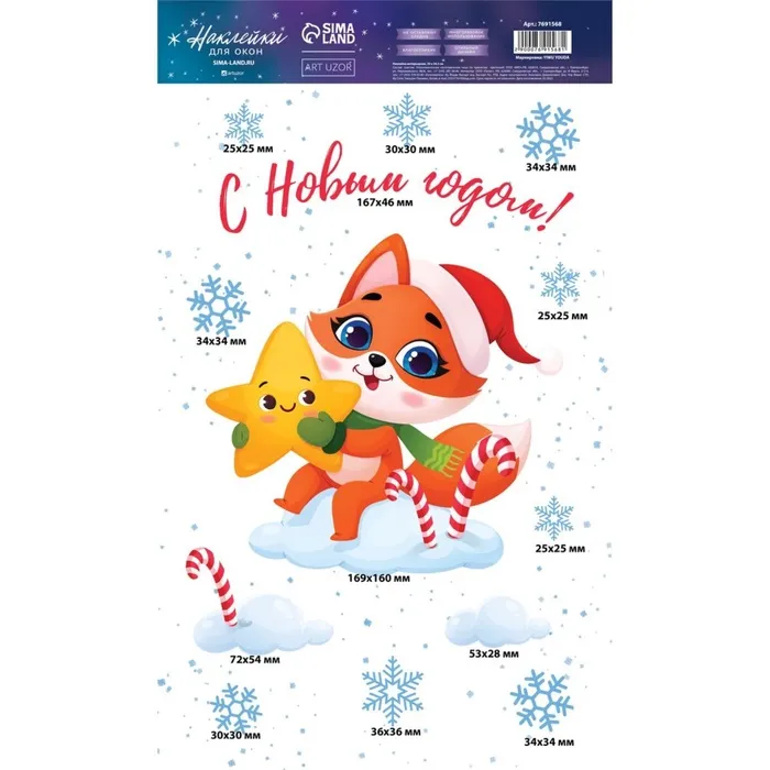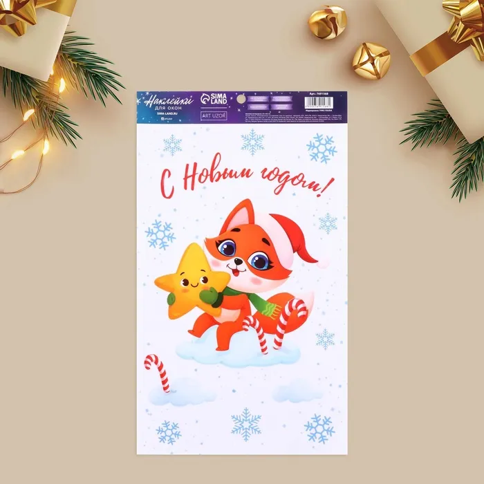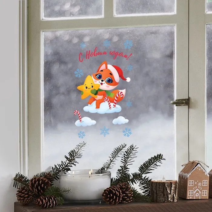 Наклейки новогодние на окна, виниловые «Лисичка в облаках», многоразовые, 20 х 34,5 см — Характеристики
