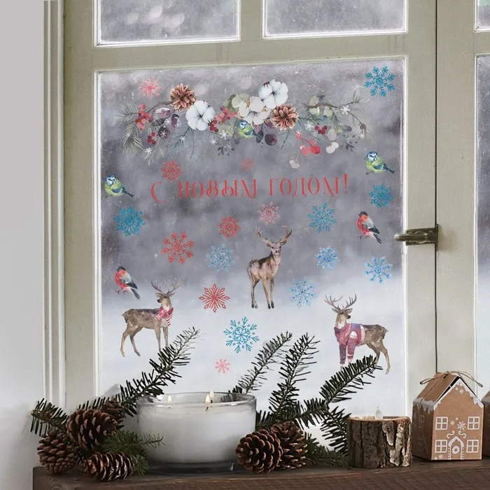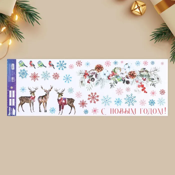 Наклейки новогодние на окна, виниловые «Новогодняя ботаника», многоразовые, 70 х 25 см — Характеристики